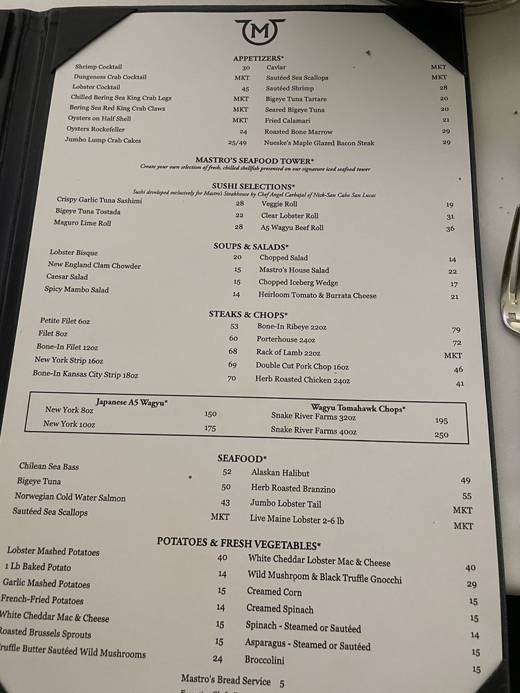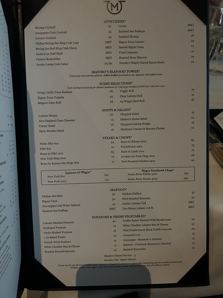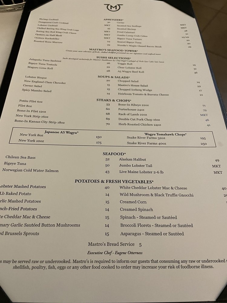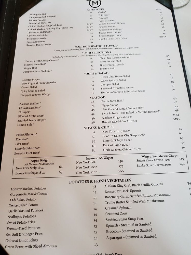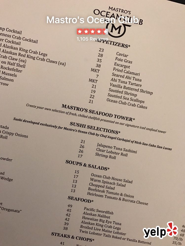 Mastro’s Ocean Club is a classy and upscale dining spot located in Las Vegas, offering an extensive menu with a focus on seafood and steaks. From appetizers like shrimp cocktail and lobster bisque to sushi selections such as Ahi Tuna Tostada and Clear Lobster Roll, the variety is impressive. Customers rave about the exceptional service and top-notch quality of the food, especially the perfectly cooked steaks and fresh seafood. The ambiance is elegant and welcoming, making it a great choice for special occasions or a splurge dinner. With options for keto and vegetarian diets, Mastro’s Ocean Club caters to a diverse range of preferences. Don't miss out on their famous butter cake for dessert, a perfect ending to a memorable dining experience.